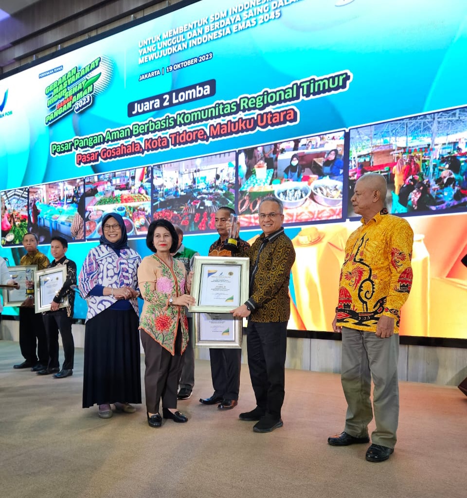 Malutzone.com – Pasar Rakyat Gosalaha yang di Kelurahan Indonesiana, Kecamatan Tidore, Kota Tidore Kepulauan berhasil menyabet juara II lomba Pasar Pangan Aman Berbasis Komunitas Tingkat Nasional untuk Wilayah Regional Timur Tahun 2023.
