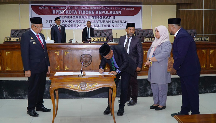 Tiga Rancangan Peraturan Daerah tersebut disetujui dan disahkan pada sidang Paripurna ke-10 Masa Persidangan I Tahun 2023 dengan agenda pembicaraan tingkat II atas tiga Rancangan Peraturan Daerah Kota Tidore Kepulauan Tahun 2023 di Gedung DPRD Kota Tidore Kepulauan, Selasa (24/10/2023).