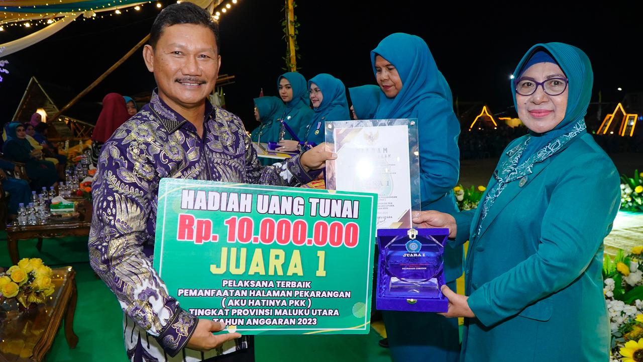 Prestasi tersebut diraih dalam Lomba 10 Program Pokok PKK Tingkat Provinsi Maluku Utara yang diumumkan pada acara penutupan Hari Kesatuan Gerak (HKG) PKK Ke-51 di Kota Bobong, Kabupaten Pulau Taliabu, Rabu (1/11/2023).