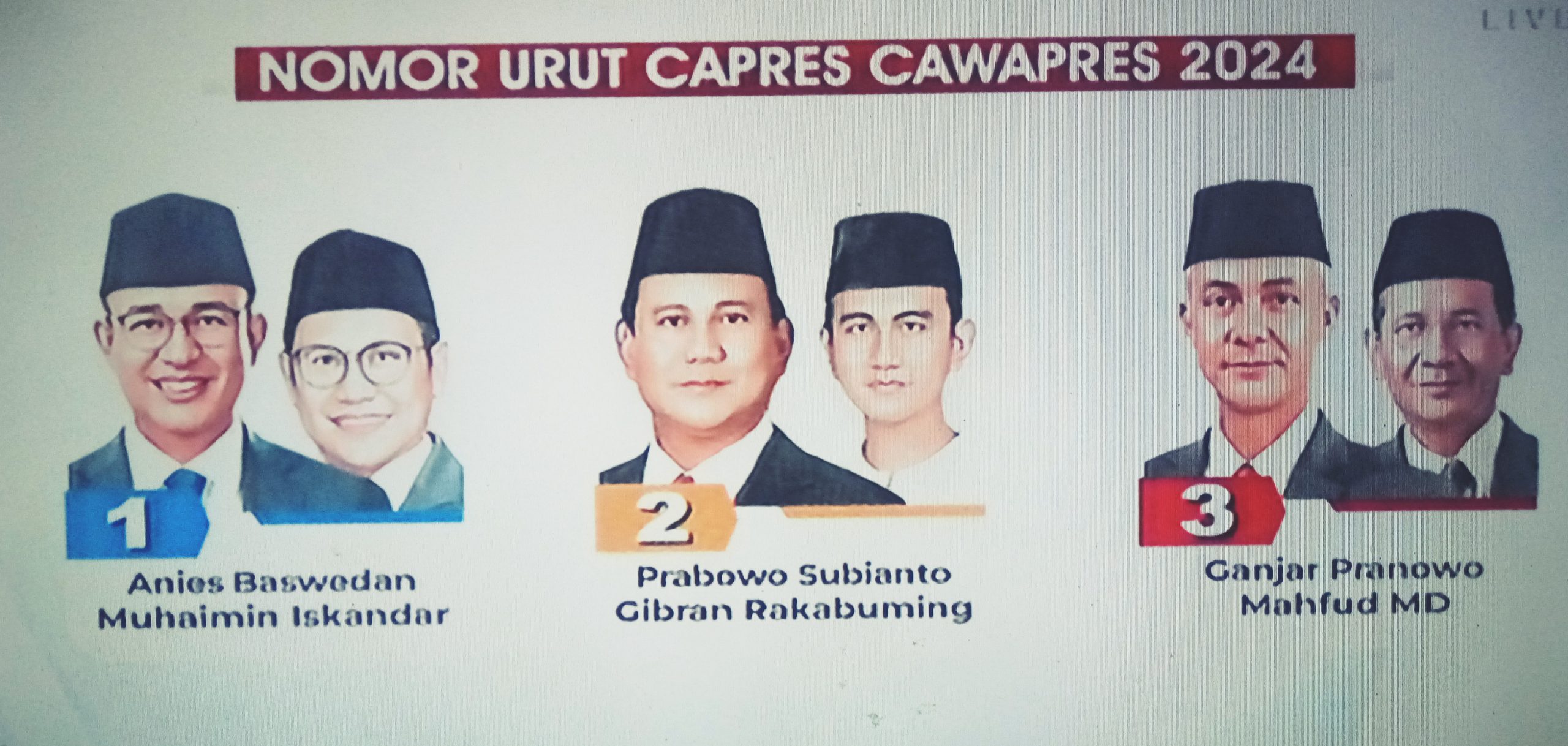 Hasilnya, pasangan Anies Baswedan dan Muhaimin Iskandar, Ganjar Pranowo dan Mahfud MD, serta Prabowo Subianto dan Gibran Rakabuming Raka dinyatakan sebagai pasangan calon presiden dan wakil presiden secara resmi lewat Keputusan KPU RI Nomor 1632 Tahun 2023.