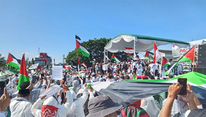 “Ada amanah konstitusi, penjajahan di atas dunia harus dihapuskan, sehingga Palestina harus merasakan kemerdekaan dan hidup berdampingan di Jalur Gaza,” kata Abdillah Onim dalam orasinya.