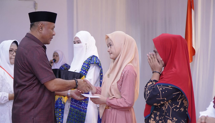 Puncak peringatan Hari Lahir (Harla) Badan Kontak Majelis Ta’lim (BKMT) ke 42 di Kota Tidore Kepulauan diakhiri dengan pemotongan Bira Dara sekaligus penyerahan santunan kepada para Mualaf.