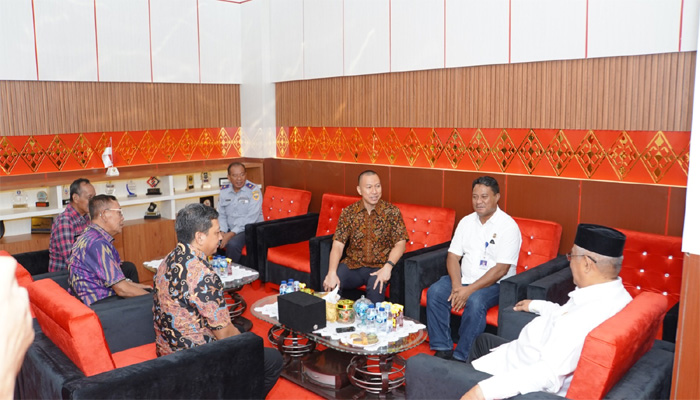 Jazirah Indonesia – Walikota Tidore Kepulauan Capt, H. Ali Ibrahim, MH, menerima kunjungan kerja Kepala Bidang Lalu Lintas, Angkutan dan Kepelabuhanan Kantor Kesyahbandaran dan Otoritas Pelabuhan (KSOP) Utama Tanjung Priok Chaerul Awaludin bersama rombongan ke Kota Tidore, di Ruang rapat Walikota, Jumat (26/1/2024).