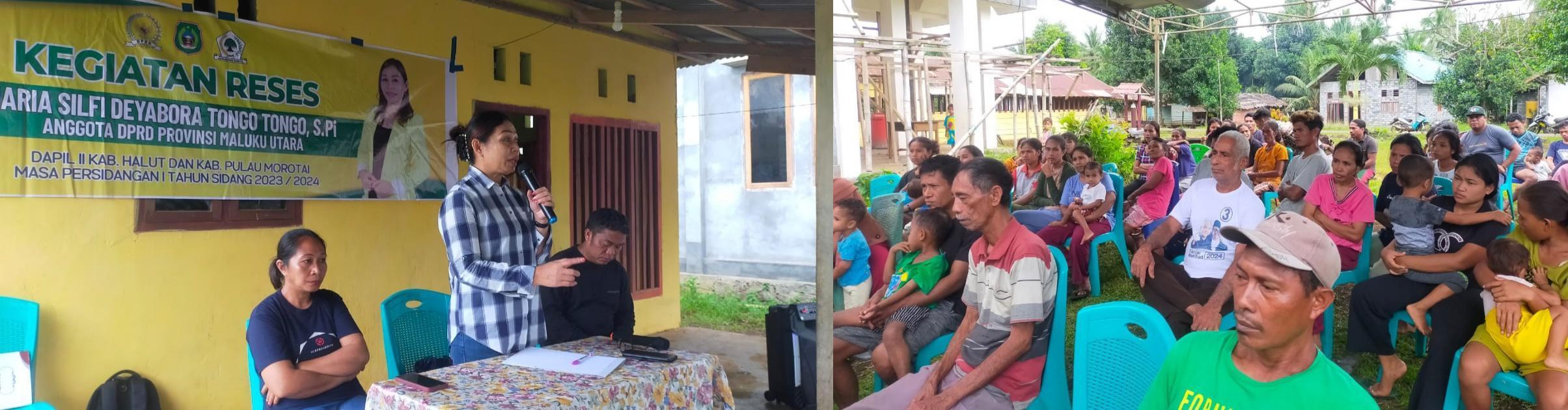 Seperti yang dilakukan Anggota DPRD Provinsi Maluku Utara, Maria Deabora Tongo Tongo, saat turun reses di masa persidangan pertama tahun 2024.