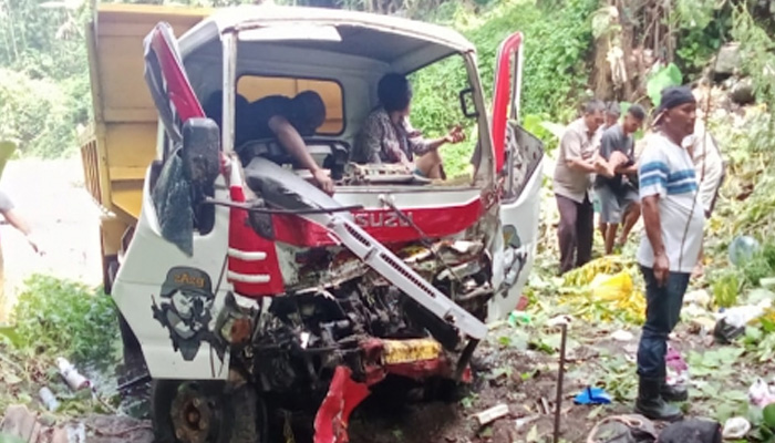 “Setelah menabrak mobil pick up, Truck Isuzu Hino hilang keseimbangan dan oleng ke sebelah kanan menghantam pembatas Jembatan Tabesan, sehingga jatuh ke dalam kali mati dengan ketinggian di perkirakan kurang lebih 10 meter,” jelasnya.