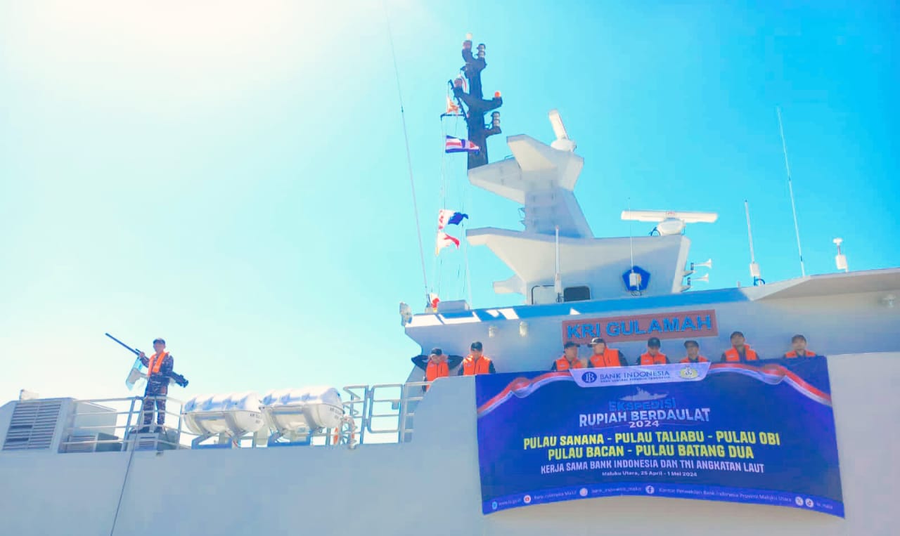 Jazirah Indonesia – Ekspedisi Rupiah Berdaulat (ERB) yang dilakukan oleh Perwakilan Bank Indonesia Maluku Utara dan TNI AL akan mengunjungi 5 pulau terluar di Maluku Utara setelah dilakukan pelepasan di Pelabuhan Ahmad Yani, Kota Ternate, Kamis (25/4/2024).