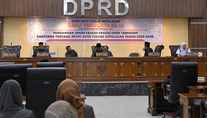 Pandangan fraksi DPRD Kota Tidore tesebut diagendakan pada Rapat Paripurna ke-12 masa persidangan III Tahun 2024, di Gedung DPRD Kota Tidore Kepulauan, Kamis (18/7/2024).