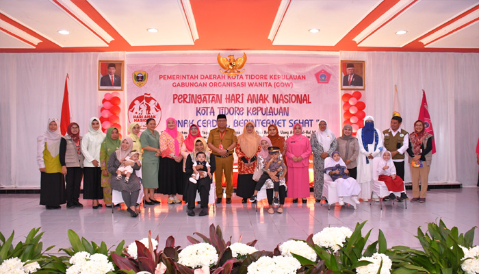 Sementara, Ketua GOW Kota Tidore Kepulauan, Ny. Hj. Elvri Habib dalam sambutannya menyampaikan, Peringatan Hari Anak tahun ini, GOW mengusung tema “Anak Cerdas, Berinternet Sehat,” artinya Perkembangan teknologi saat ini, tidak dapat mengontrol setiap kegiatan anak, sementara anak harus mampu membedakan yang baik dan tidak baik, pantas dan tidak pantas, untuk mencegah dampak buruk dari penggunaan teknologi informasi dan komunikasi.