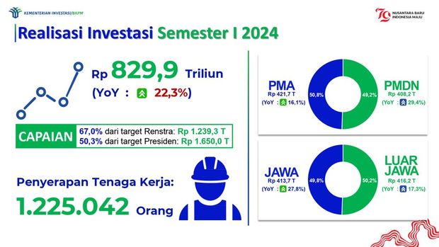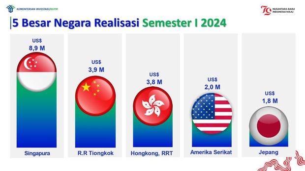 Realisasi Investasi Semester I 2024. (Dok. Kementerian Investasi/BKPM)