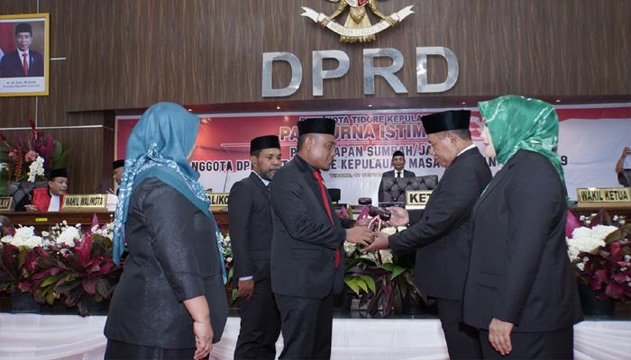 Pelantikan 25 anggota DPRD tersebut dilaksanakan melalui Rapat Paripurna Istimewa Pengucapan Sumpah Janji Anggota DPRD masa jabatan 2024-2029 dan disahkan berdasarkan Surat Keputusan Gubernur Maluku Utara Nomor 539/KPTS/MU/2024 tetang peresmian pengangkatan Anggota Dewan Perwakilan Rakyat Daerah Kota Tidore Kepulauan masa jabatan Tahun 2024-2029.
