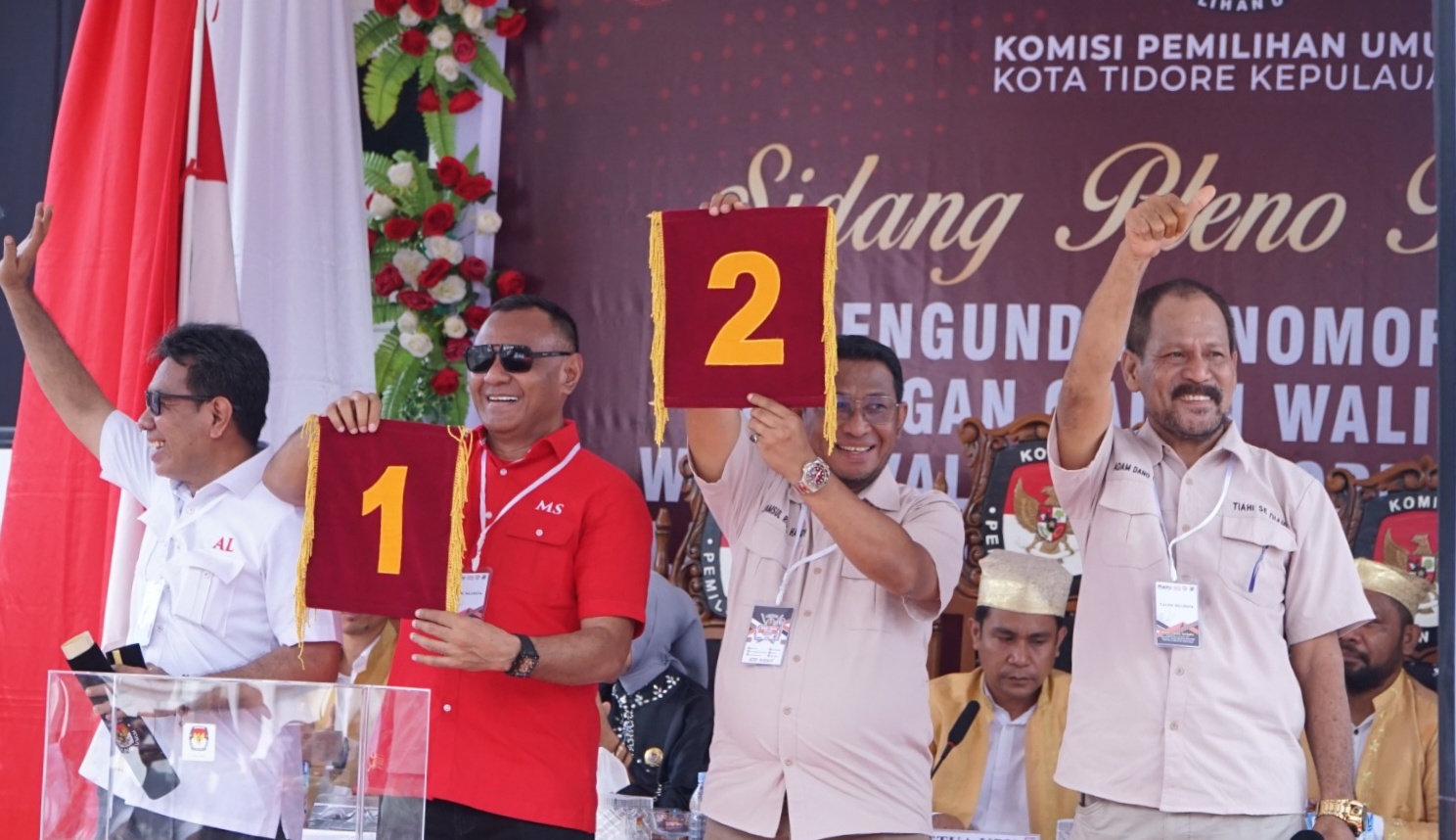 Pengundian nomor urut yang digelar melalui rapat pleno terbuka di halaman kantor KPU Kota Tidore itu, pasangan calon Muhammad Sinen – Ahmad Laiman (Masi-Aman) mendapat nomor urut 1.