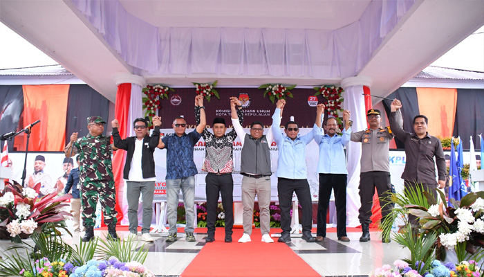 Jazirah Indonesia – Komisi Pemilihan Umum (KPU) Kota Tidore Kepulauan meggelar Deklarasi Kampanye Damai Pemilihan Walikota dan Wakil Walikota Kota Tidore Kepulauan Tahun 2024 bertempat di Halaman Kantor KPU Kota Tidore Kepulauan, Selasa (24/9/2024).