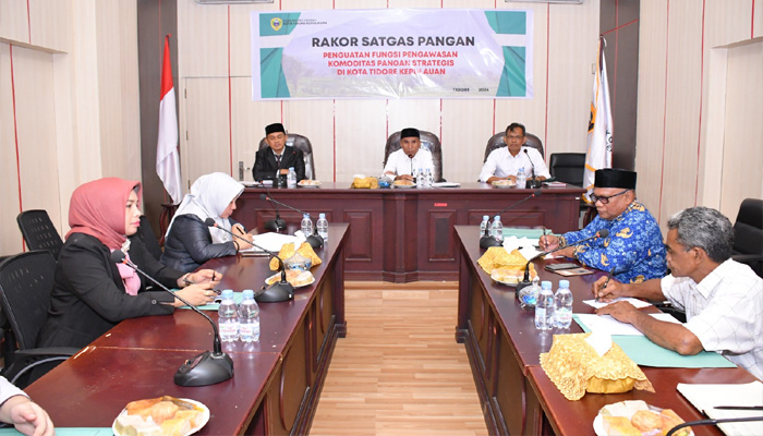 Jazirah Indonesia – Dalam rangka penguatan fungsi pengawasan komoditas pangan di Kota Tidore Kepulauan, Pemerintah Daerah Kota Tidore Kepulauan melalui Dinas Ketahanan Pangan menggelar Rapat Kordinasi (Rakor) Satgas Pangan Penguatan Fungsi Pengawasan Komoditas Pangan Strategis.