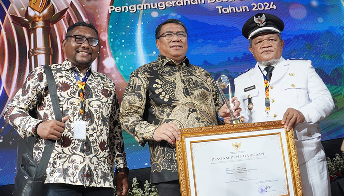 Piagam penghargaan diberikan oleh Kementerian Dalam Negeri (Kemendagri) dalam hal ini diserahkan oleh Direktur Jenderal Bina Pemerintahan Desa Kemendagri La Ode Ahmad P. Bolombo pada agenda Temu Karya Nasional dan Penganugerahan Desa dan Kelurahan berprestasi yang dipusatkan di Ksirarnawa Art Center Bali, Selasa (8/10/2024).