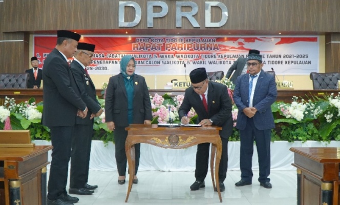 Rapat Paripurna diakhiri dengan Penandatanganan berita acara pengumuman akhir masa jabatan Wali Kota dan Wali Kota Tidore Kepulauan Periode 2021-2025, oleh pimpinan DPRD.