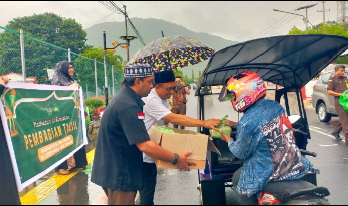 Pembagian takjil yang dilakukan di jalan Taman Siswa, tepatnya di depan SMP Negeri 1 Kota Tidore, itu dikoordinir langsung Kepala Kejari Tidore, Widi Trismono.