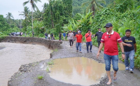 Jalan penghubung kecamatan Oba dan Oba Selatan itu longsor lantaran terkikis aliran air sungai yang deras sejak hujan beberapa hari terakhir. Akibatnya, aktifitas masyarakat menjadi terhambat.
