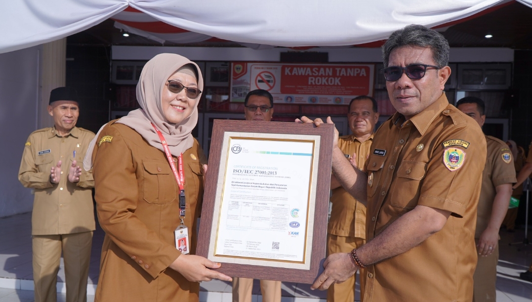 Malutzone – Dinas Kependudukan dan Pencatatan Sipil (Dukcapil) menerima Penghargaan Sertifikat Sistem Manajemen Keamanan Informasi (SMKI) ISO 27001 atau International Organization for Standardization (ISO) dari Kementerian Dalam Negeri di Jakarta, Rabu (23/4/2025) lalu.