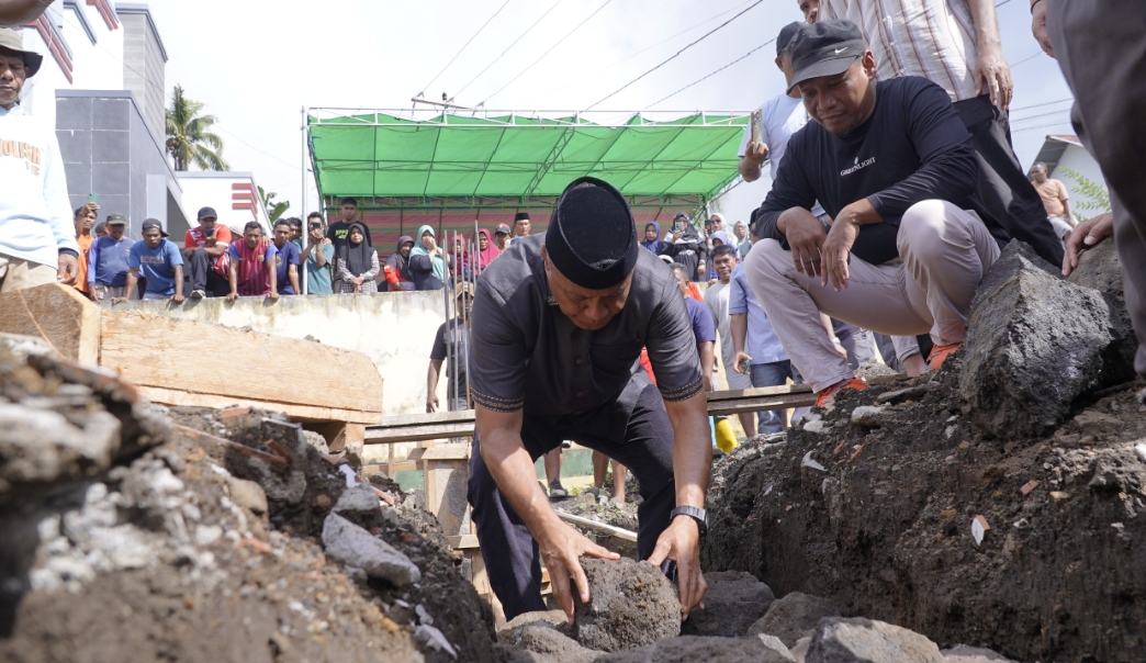 Malutzone – Wali Kota Tidore, Muhammad Sinen meletakan batu pertama pembangunan masjid Nurul Huda, kelurahan Tambula, kecamatan Tidore, Sabtu (17/5/2025).