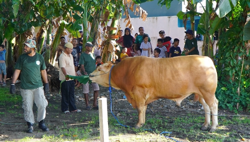 Bantuan hewan kurban tersebut diserahkan oleh Wakil Wali Kota Tidore Kepulauan Ahmad Laiman kepada panitia kurban masjid Induk Nyili Gamtufkange, Kecamatan Tidore, Sabtu (7/6/2025)
