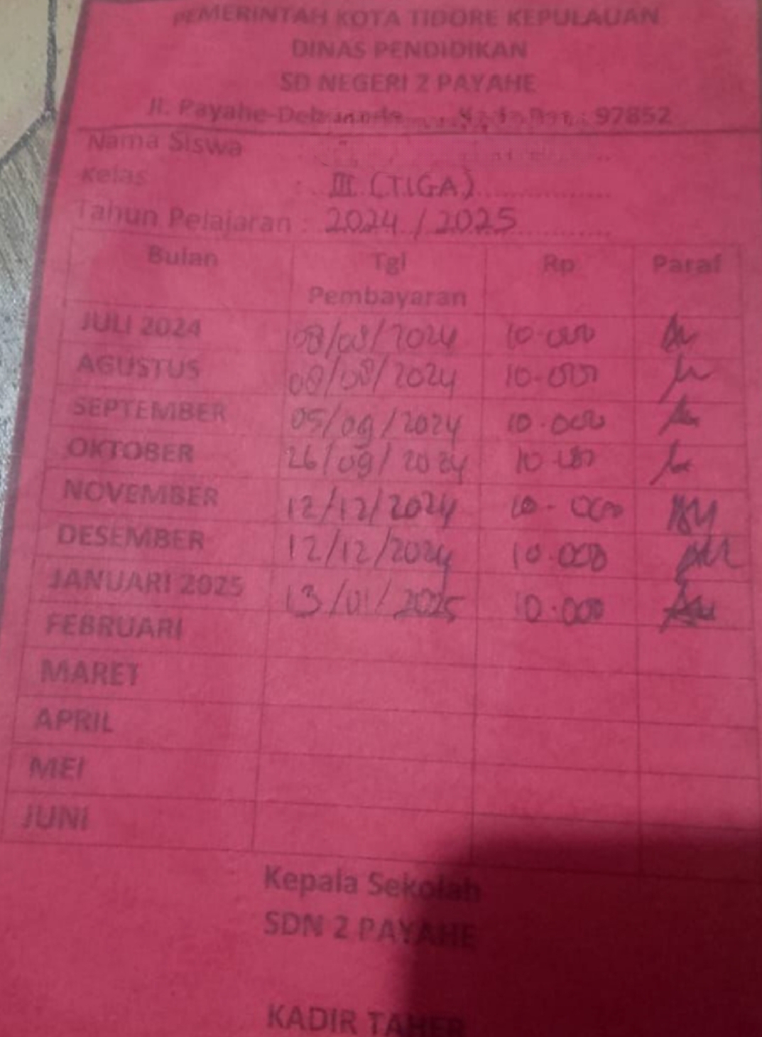 Berdasarkan informasi yang diterima dari masyarakat kata Kasman, setiap siswa di SDN 2 Payahe diminta Rp10 ribu setiap bulannya.