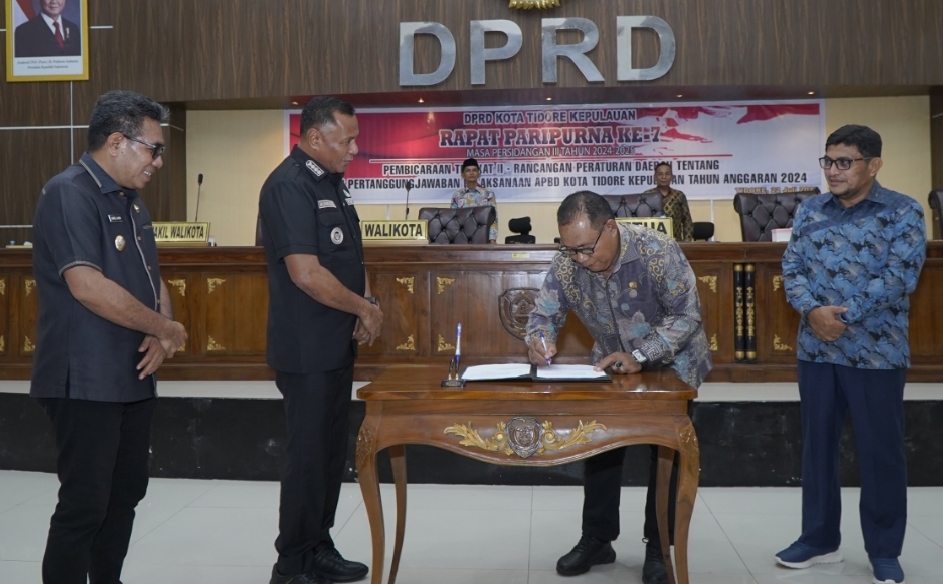 Malutzone – Rancangan Peraturan Daerah Kota Tidore Kepulauan tentang Laporan Pertanggungjawaban Pelaksanaan (LPP) APBD Tahun 2024 resmi diterima dan disetujui oleh DPRD Kota Tidore Kepulauan dalam rapat paripurna ke-7 masa persidangan III tahun 2025 di ruang paripurna DPRD Kota Tidore Kepulauan, Selasa (22/7/2025).