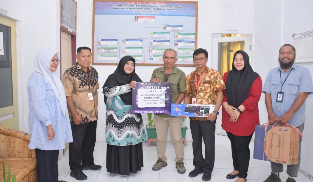 Penghargaan tersebut diberikan kepada kampung KB Garda Indo dari kelurahan Indonesiana, Kecamatan Tidore, yang diserahkan oleh Perwakilan BKKBN Provinsi Maluku Utara yang diterima langsung oleh Lurah Indonesiana didampingi Kepala Dinas Pengendalian Penduduk, Keluarga Berencana, Pemberdayaan Perempuan dan Perlindungan Anak (P2KBP3A) Kota Tidore Kepulauan Hasby Marsaoly, di ruang Kerja P2KBP3A Kota Tidore, Kamis (31/7/2025).