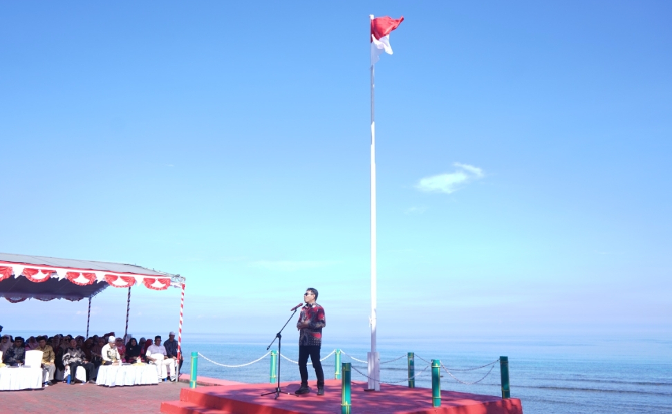 Pengibaran bendera merah putih di tanjung Mafutabe dirangkaian dalam acara festival Djuanga III tahun 2025, dalam rangka memeriahkan HUT ke-80 RI.