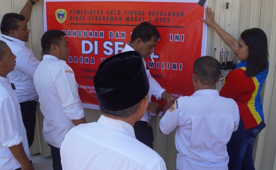 Penyegelan ini dikoordinir oleh Asisten Sekda Bidang Perekonomian dan Pembangunan, Taher Husain bersama Dinas PTSP, Dinas Perindagkop, Satpol PP, Sekcam Oba Tengah, Instansi terkait dan disaksikan oleh Pengelola SJL Indomaret Loleo Chirel Tatulus.