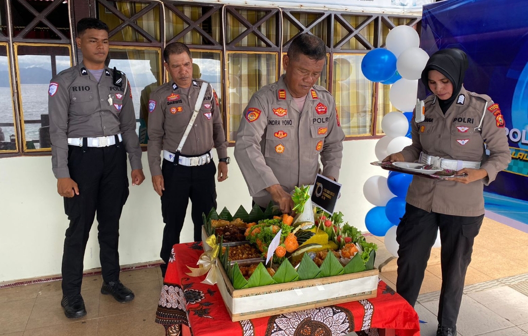Malutzone – Satlantas Polresta Tidore memperingati HUT ke-70 Lalu Lintas Bhayangkara dengan menggelar syukuran di rumah makan Kagunga, Pantai Tugulufa, Kota Tidore Kepulauan, Senin (22/9/2025).