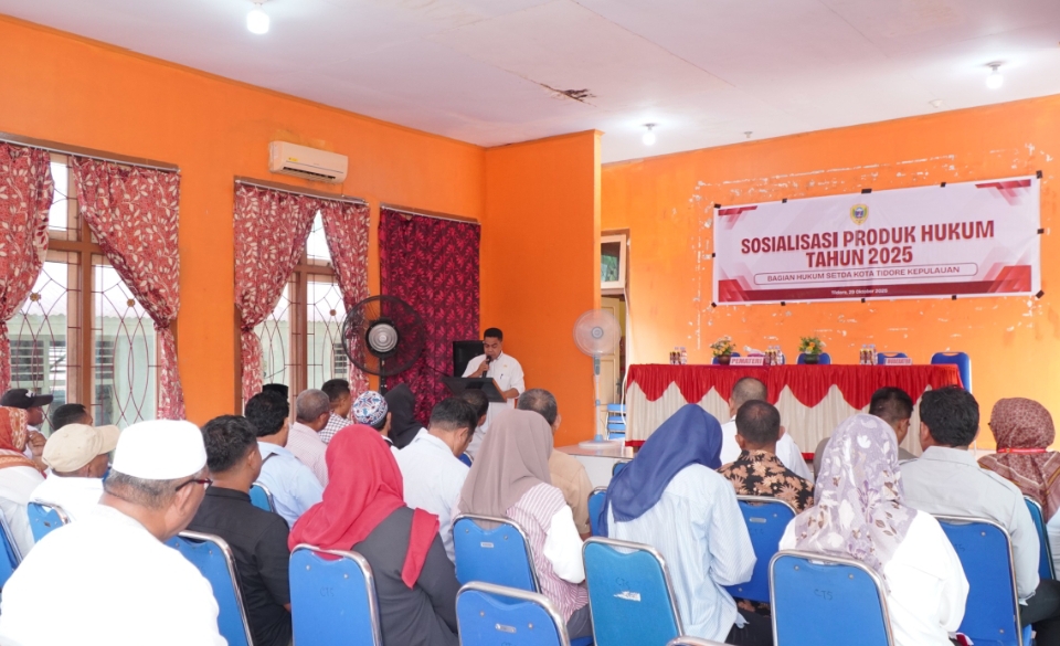 Malutzone – Bagian Hukum Sekretariat Daerah Pemerintah Kota Tidore Kepulauan menggelar sosialisasi produk hukum di kantor kecamatan Tidore Selatan, Rabu (29/10/2025).