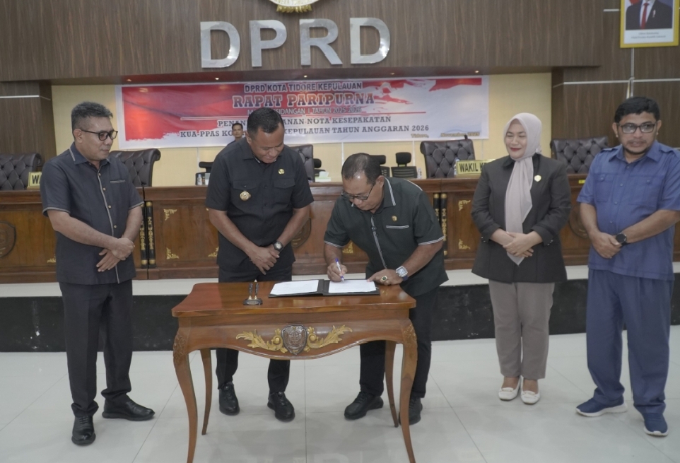 Wali Kota Tidore Kepulauan Muhammad Sinen dalam sambutannya menyampaikan penandatanganan nota kesepakatan KUA dan PPAS merupakan momentum strategis yang menandai kesepahaman antara pemerintah daerah dan DPRD dalam merumuskan arah kebijakan fiskal dan prioritas pembangunan tahun mendatang.